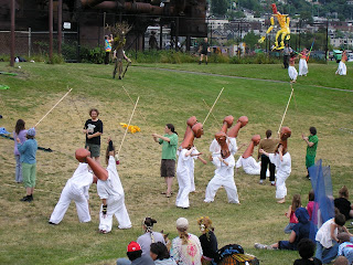 Imagine my surprise yesterday when I read in the Seattle TIMES that the Solstice Parade was going on, even as I read. For any one not familiar with Seattle and its traditions, the annual Solstice Parade happens every summer solstice, an event reminiscent of Mardi Gras in New Orleans, a huge celebration of all or most or at least some of Seattle's artist community, replete with all the free spirits looking for a venue.